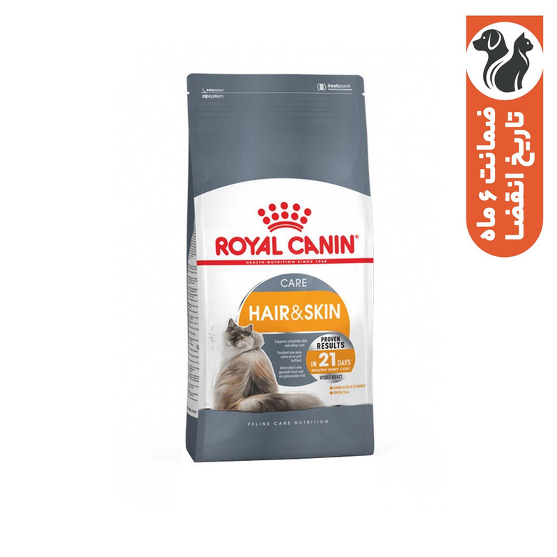 غذای خشک گربه رویال کنین مدل HAIR AND SKIN وزن 10 کیلوگرم