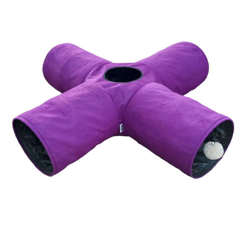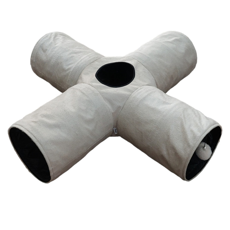 قابل شستشو پارچه مقاوم پارچه داخلی ضدآب حفره دار دارای لایه های صدادار دارای پوم پوم آویزان جمع شونده دارای کیف حمل مناسب برای بچه گربه ها ، گربه های بالغ، سگ های کوچک و خرگوش