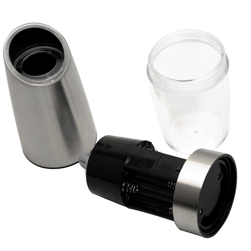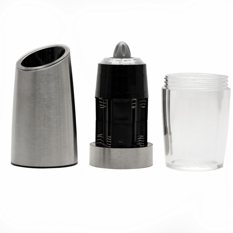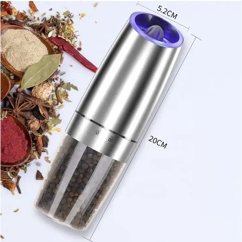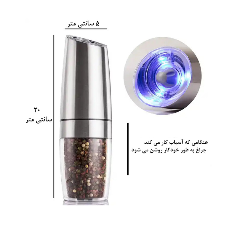 【عملکرد خودکار】 فلفل ساب و نمک ساب برقی ، با توجه به داشتن سنسور جاذبه شما می توانید دستگاه را برگردانید و بدون نیاز به فشردن دکمه نمک و ادویه های آسیاب شده و تازه داشته باشید. ، هر دستگاه آسیاب به 6 باتری قلمی نیاز دارد. (باتری ها شامل دستگاه نمی باشند) 【 آسیاب قابل تنظیم】 این دستگاه به شما این امکان را می دهد که ریزی و درشتی ادویه را انتخاب کنید. فلفل ساب و نمک ساب برقی ازخردکن سرامیکی با کیفیت بالا استفاده می کند. ریزی و درشتی ادویه خود را می توانید با چرخاندن دکمه تنظیم در سر آسیاب انتخاب کنید. 【کاربرد گسترده】 آسیاب برقی برای فلفل، نمک و سایر چاشنی های دانه جامد مناسب است و راحت و سریع شما می توانید آن را در هر زمان و هر مکان استفاده کنید. این آسیاب کمک خوبی برای آشپزخانه، رستوران، مهمانی و پیک نیک در فضای باز است. 【طراحی منحصر به فرد】ظرف شیشه ای این محصول این امکان را به شما می دهد که از ظرفیت باقیمانده ادویه خود آگاه باشید و در هنگام استفاده از آن نور آبی ملایمی از انتهای دستگاه ساطع می شود.