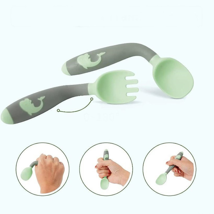 قاشق چنگال کودک، فاقد مواد BPA، به همراه باکس جهت نگهداری آنها، به همراه دسته های کاملا انعطاف پذیر
