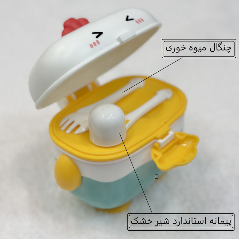 -وزن کمتر نسبت به قوطی شیر خشک -ابعاد کوچکتر نسبت به قوطی شیر خشک -به همراه پیمانه با حجم استاندارد -طراحی فانتزی وشیک -دارای درب دوبل برای جلوگیری از ریزش شیر خشک -به همراه چنگال میوه خوری -حجم 350 میلی لیتر