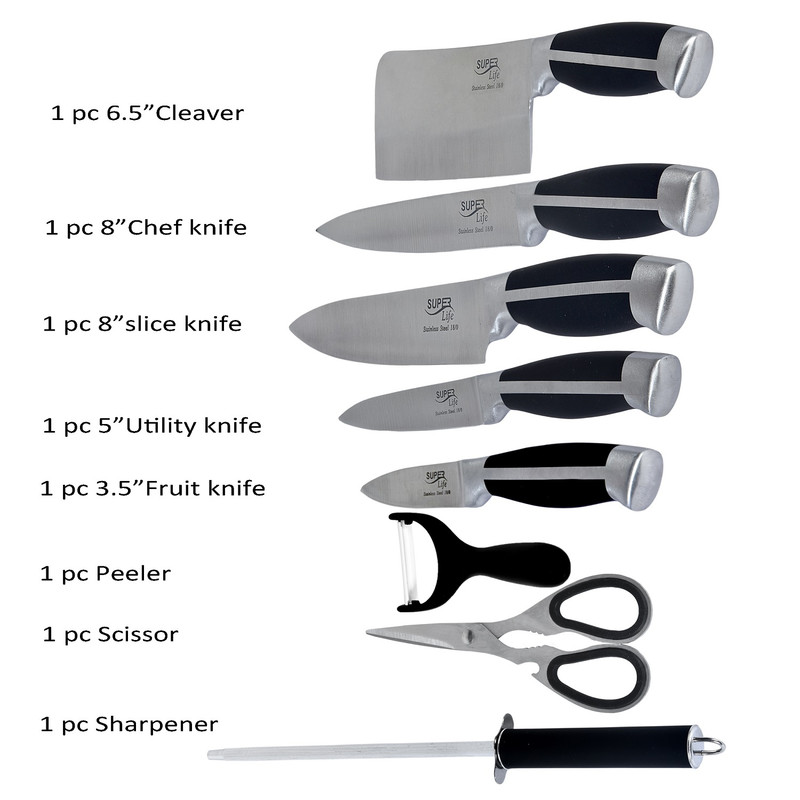 سرویس چاقوی آشپزخانه 9 پارچه سوپر لایف مدل SL-008