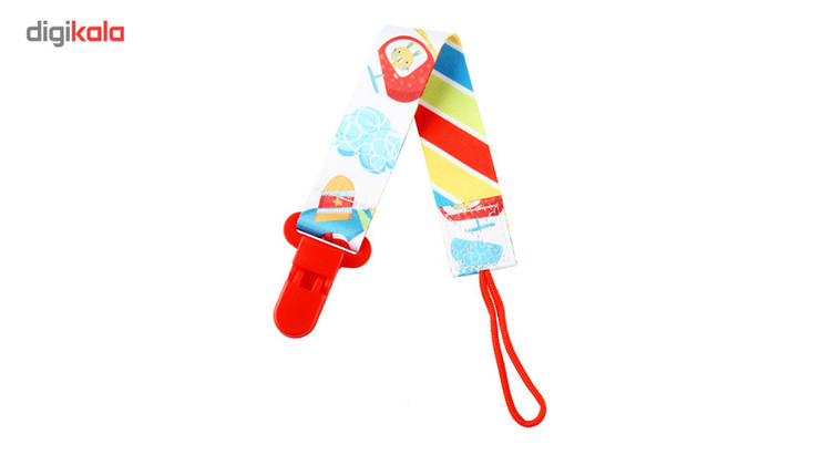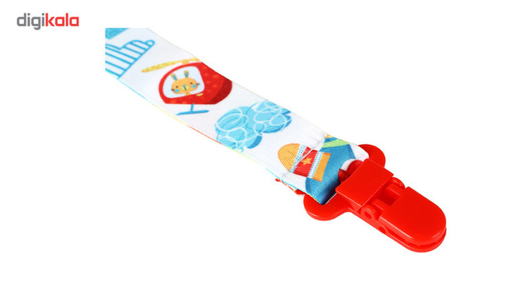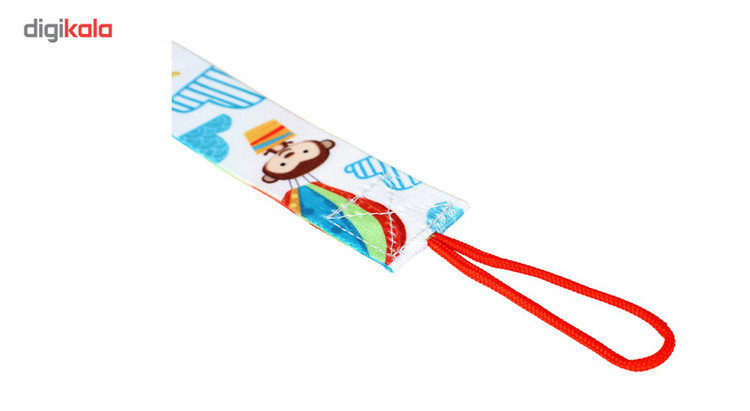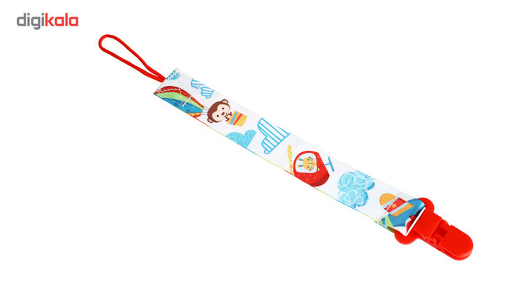- جنس پارچهای - دارای یک گیره پلاستیکی، جهت وصل کردن به لباس نوزاد - دارای یک بند کوتاه، جهت وصل کردن به حلقه پستانک