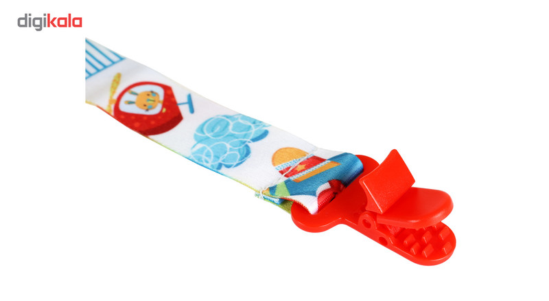 - جنس پارچهای - دارای یک گیره پلاستیکی، جهت وصل کردن به لباس نوزاد - دارای یک بند کوتاه، جهت وصل کردن به حلقه پستانک