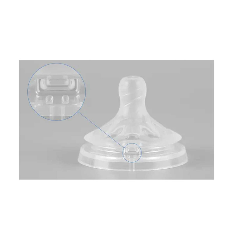دارای برجستگی نرم جهت تسکین لثه/ احساس تغذیه طبیعی با سینه مادر/ جنس سیلیکونی 100 درصد بهداشتی قابلیت سوییچ شدن و استفاده در شیشه شیرهای فیلیپس اونت philips avent مدل نچرال و شیشه شیرهای دهانه عریض یومامی/ فاقد pvc/ سری سایز 2/ مناسب نوزادی تا 12 ماهگی