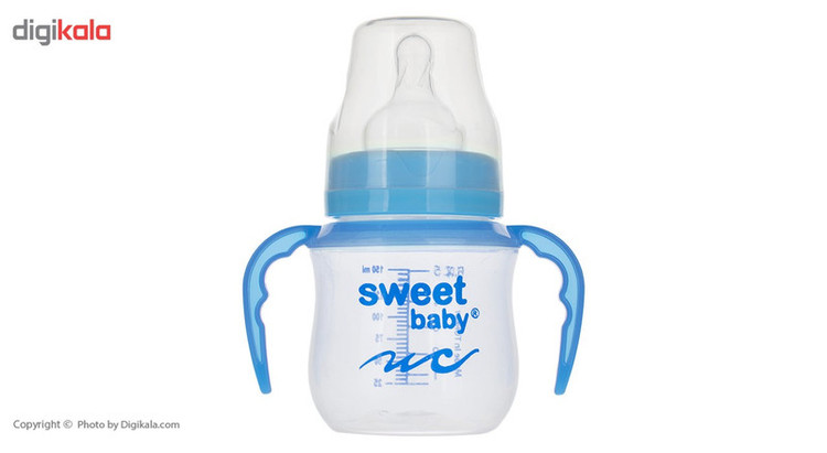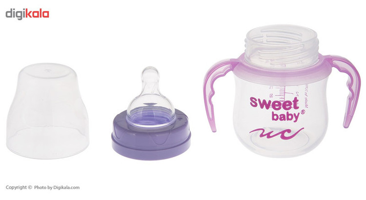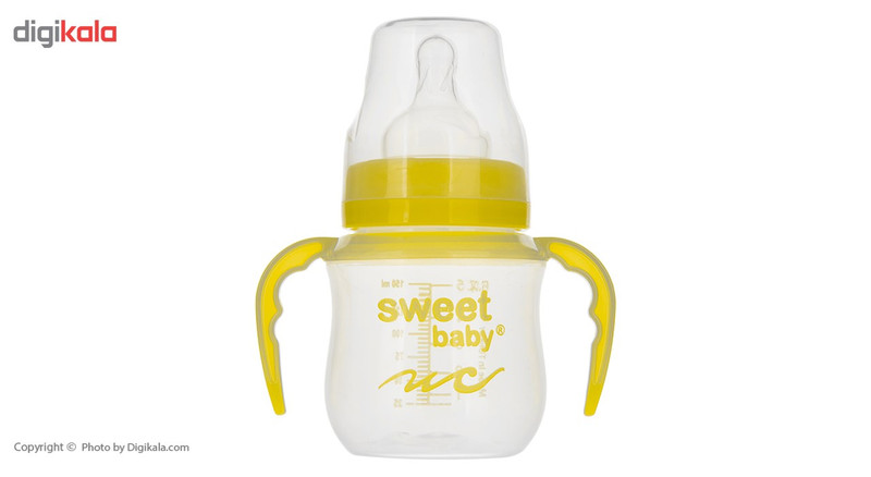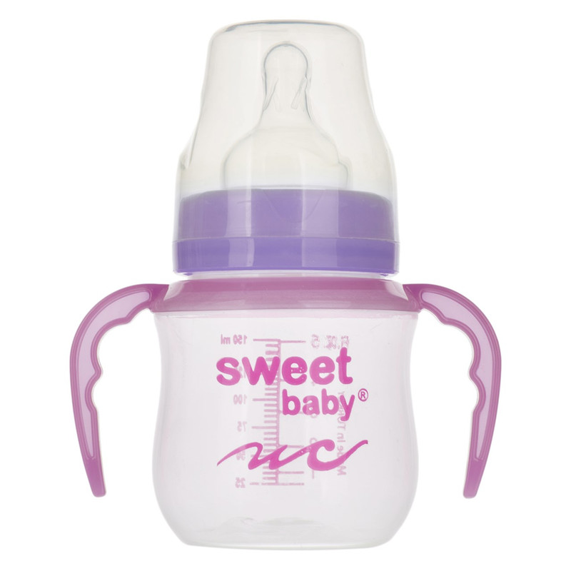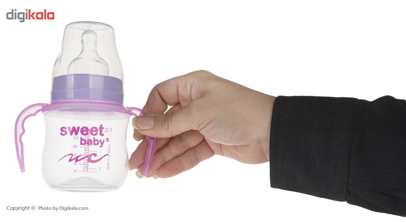 این مدل از شیشهشیر برند «سوییتبیبی» یک شیشهشیر با بدنهای پلاستیکی و با ظرفیت 150 میلیلیتر است. این شیشهشیر با توجه به سلیقههای مختلف در چند رنگبندی شاد ارائه شده است. این شیشهشیر از مواد بهداشتی تولید شده و فاقد ماده مضر BPA است. انتخاب پلیپروپیلن در ساختار بدنه، مقاومت بدنه را افزایش داده است. پلیپروپیلن از نوع پلاستیکهای ایمن محسوب می شود. بدنه این شیشهشیر بیرنگ و شفاف است و روی آن نام لاتین برند «سوییتبیبی» طراحی شده است. همچنین روی بدنه این محصول خطوط درجهبندی را خونا و واضح میبینیم. طراحی درجهبندی روی بدنه به شما این امکان را میدهد تا از میزان هر وعده غذایی کودک با اطلاع شوید. بعد از بدنه این شیشهشیر، به قسمت سری آن میرسیم. قسمتی که شیر و مایعات را از داخل بطری به دهان کودک انتقال میدهد. این سری جنسی سیلیکونی دارد و از نوع گرد معمولی است. درپوش پلاستیکی این محصول به خوبی از سری شیشهشیر در برابر آلودگی محافظت میکند. همچنین در دو طرف بدنه این شیشهشیر، دو دسته در نظر گرفته شده که به راحت دست گرفتن کودک کمک میکند. این دستهها متناسب با فرم انگشتان کودک طراحی شدهاند. این دسته قابلیت جداسازی دارد.