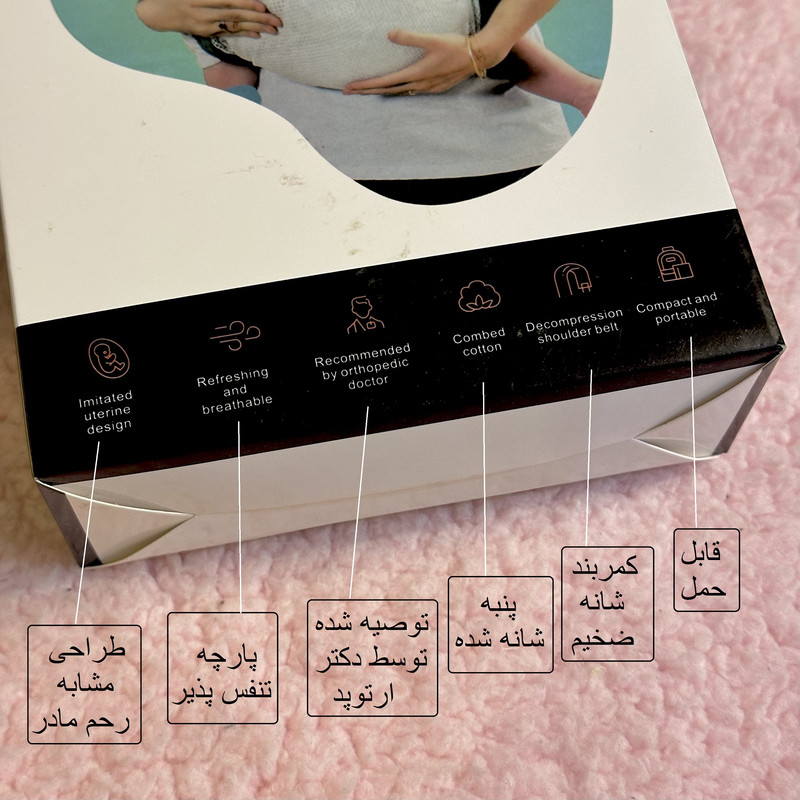 -مناسب برای استفاده روزمره داخل خانه -تقسیم وزن مناسب برای جلوگیری از خستگی و فشار بر روی ستون فقرات -بهترین نحوه قرار گیری لگن نوزاد(M POSITION) -توصیه شده توسط پزشکان ارتوپدی -کمک به خواب راحت و آسوده ی نوزاد -مناسب از بدو تولد تا 6 ماهگی