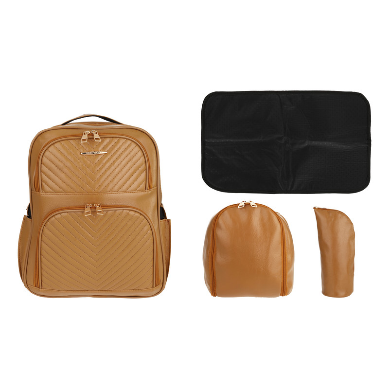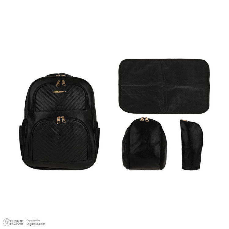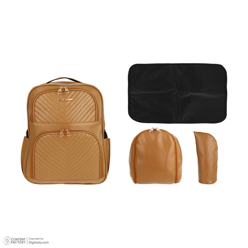 دارای 1 عدد کیف شیشه شیر به ابعاد 29x15x9 سانتی متر - 2 عدد زیرانداز کودک به ابعاد 53x34 و 60x40 سانتی متر - 1 عدد کیف لوازم جانبی به ابعاد 33x24x5.5 سانتی متر - کوله پشتی دارای 7 جیب خارجی و 7 جیب داخلی