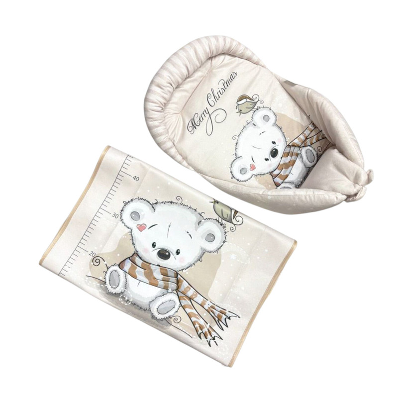 این ست شامل تشک تعویض نوزاد یا تشک اندازه گیری قد نوزاد و یک عددآغوشی می باشد .