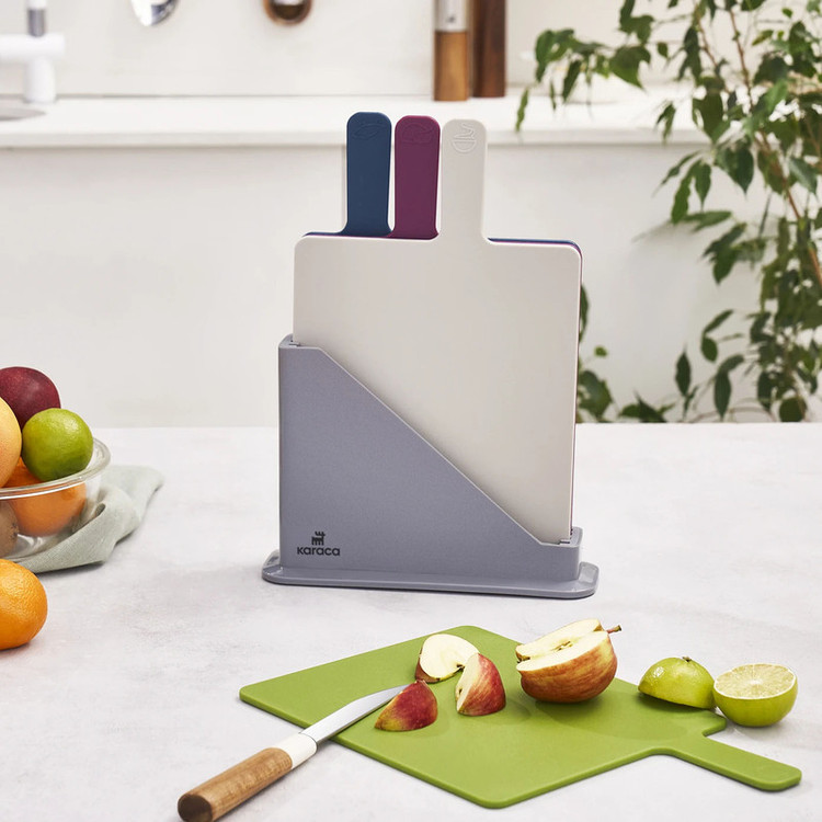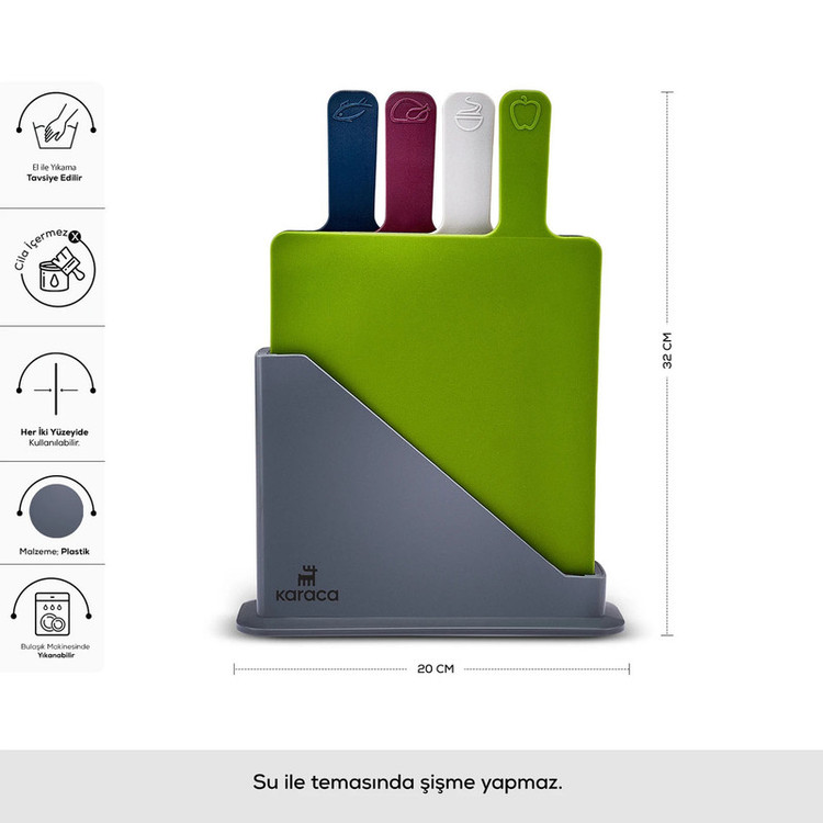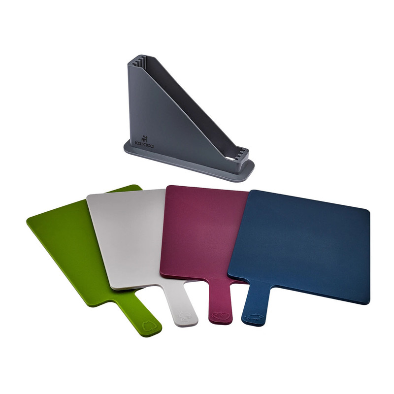 محصول شرکت کاراجا ترکیه- شامل ۱ عدد پایه نگهدارنده و ۴ عدد تخته برش در ۴ رنگ مختلف