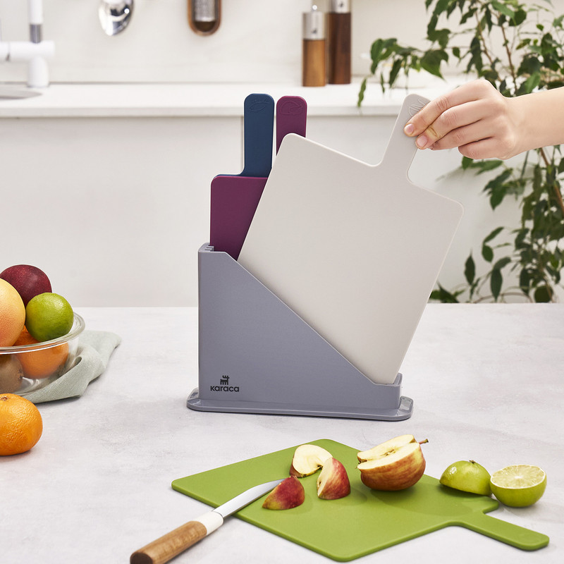 محصول شرکت کاراجا ترکیه- شامل ۱ عدد پایه نگهدارنده و ۴ عدد تخته برش در ۴ رنگ مختلف