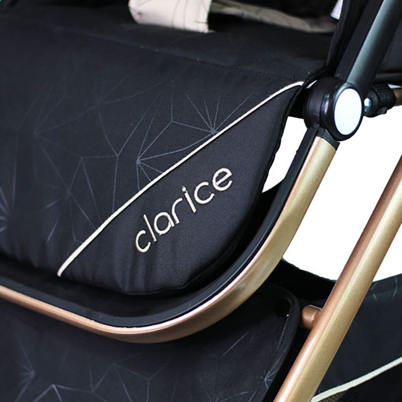 پارچه کالسکه Clarice از برزنت ضدآب با قابلیت شستشوی آسان و از نوع بسیار مقاوم است که هر نوع لک و کثیفی از روی آن بهراحتی پاک میشود و در برابر فشارهای خارجی، کشیدگی پارچه، اثرات مخرب آفتاب و… نیز از دوام و استحکام بالایی برخوردار است.