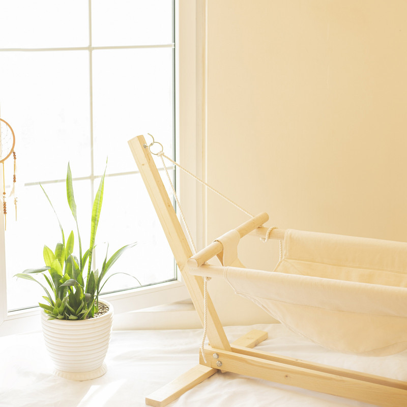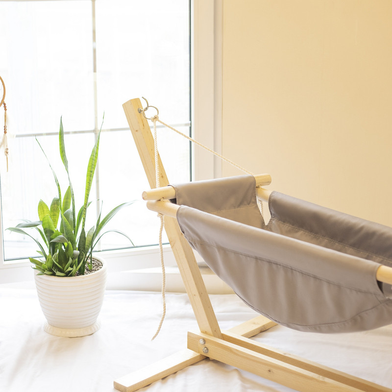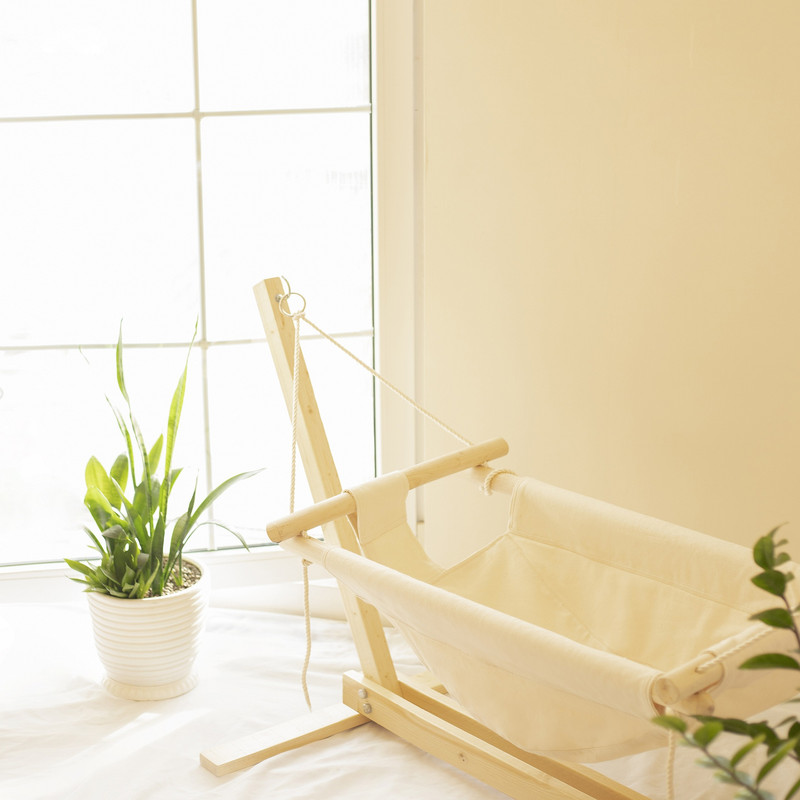 ساخته شده از چوب سفید درجه یک روسی صیقل داده شده و 4 لایه پارچه ضخیم به همراه تشک و بالش نوزاد