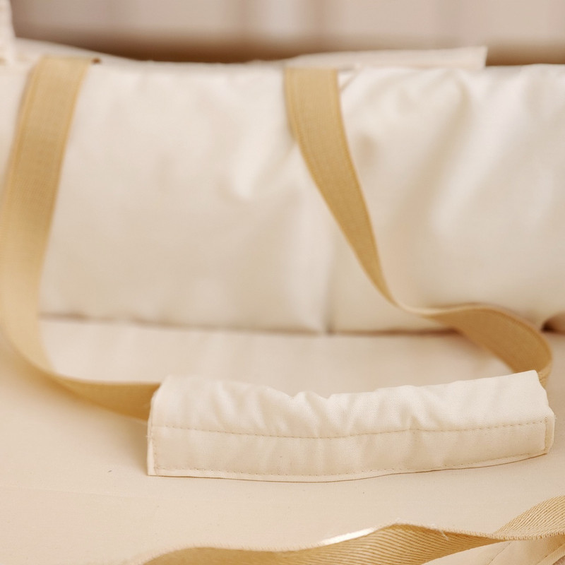 کریر سه کاره: سبد حمل، تخت خواب و گهواره، لایی پارچه ای قابل جداشدن و شستشو، مناسب برای رشد طبیعی ستون فقرات به دلیل تخت بودن کف سبد، سایه بان تاشو، آویز قلب، دسته بندهای پارچه ای، تشک اسفنجی، جنس چوب طبیعی و سبک