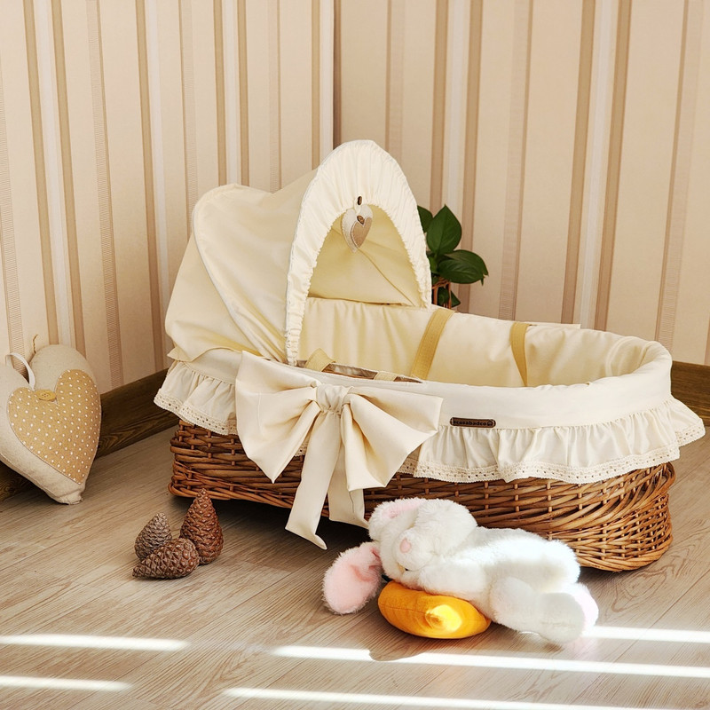 کریر سه کاره: سبد حمل، تخت خواب و گهواره، لایی پارچه ای قابل جداشدن و شستشو، مناسب برای رشد طبیعی ستون فقرات به دلیل تخت بودن کف سبد، سایه بان تاشو، آویز قلب، دسته بندهای پارچه ای، تشک اسفنجی، جنس چوب طبیعی و سبک