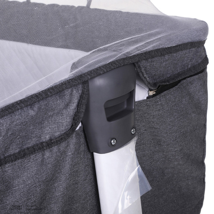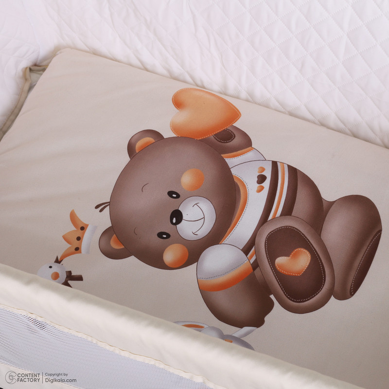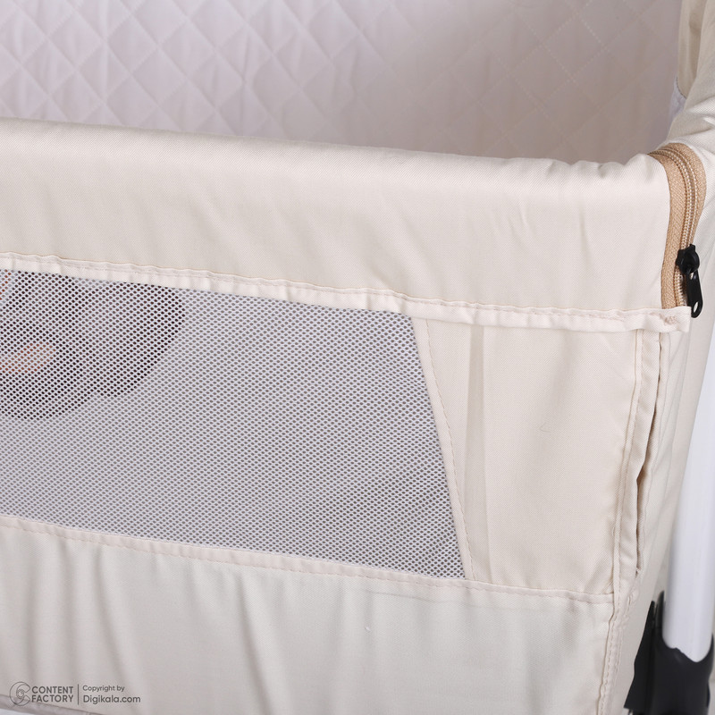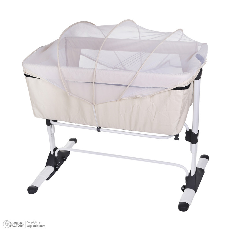 - دارای کمربند اتصال به تخت مادر جهت جلوگیری از افتادن کودک - پایهها با قابلیت تبدیل شدن به گهواره - دارای دستگیرههای تنظیم ارتفاع - پارچه داخل راشل و تترون 3 لایه ضد تعریق و ضد حساسیت - دارای پشه بند