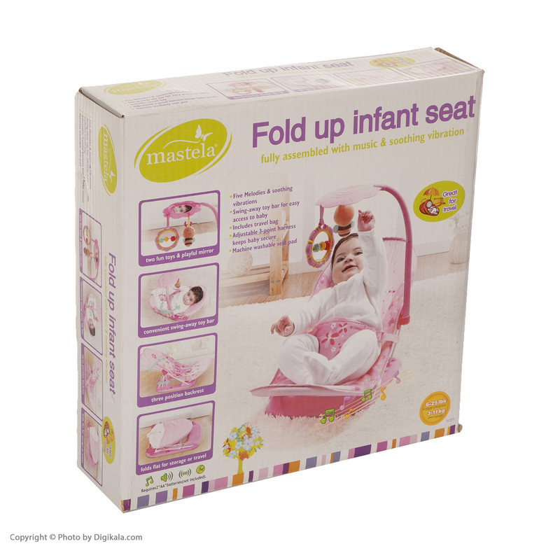 - دارای کیف حمل - دارای عروسک - دارای جغجغه - دارای قسمت آینهای شکل جهت سرگرمی نوزاد - دارای کمربند ایمنی جهت جلوگیری از حرکت نوزاد - امکان تنظیم ارتفاع در 3 حالت - امکان تغییر جهت به طرفین - امکان جمع شدن جهت حمل راحت - مناسب جهت مسافرت