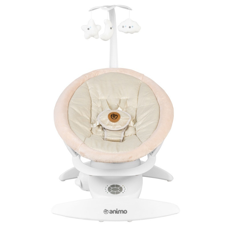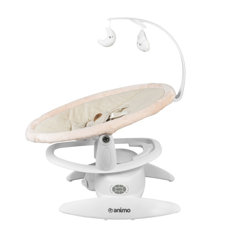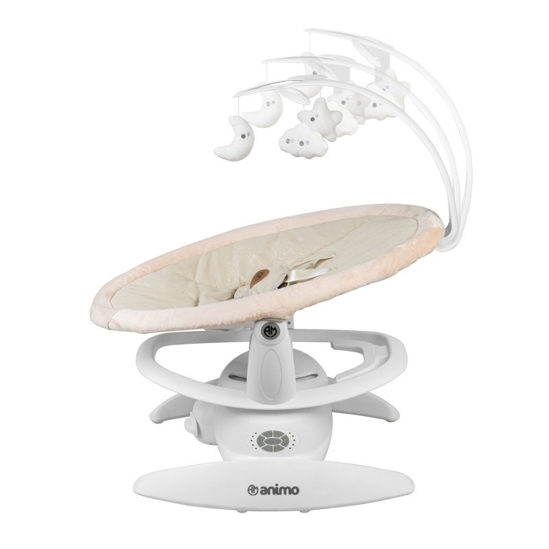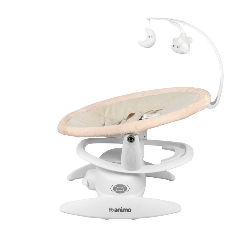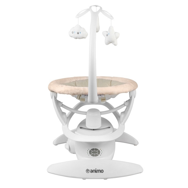 گهواره برقی animo مدل MYLOO با قابلیت تنطیم حالت گهواره در3 حالت ، تنطیم سرعت گهواره در 5 سرعت مختلف و چرخش 360 درجه گهواره با قابلیت تنطیم شیب گهواره برای خواب بهتر کودک شما و رفلاکس نوزاد به همراه آویز عروسکی میباشد.