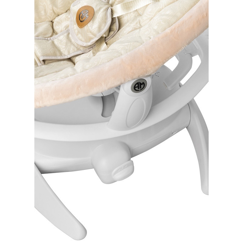 قابلیت برداشتن گهواره از پایه و قرار گرفتن بر روی زمین را دارد و قابل استفاده با برق و باتری هست . قابلیت تاب دادن نوزاد به شکل هوشمند و کمربند ایمنی با اتصال 5 نقطه ای برای ایمنی کودک شما است.
