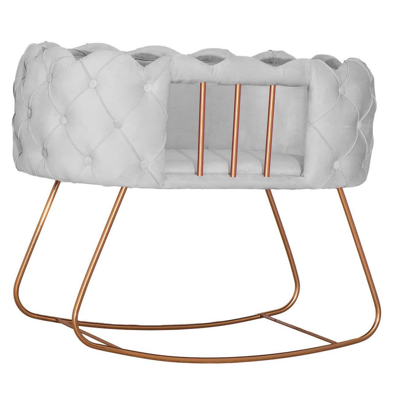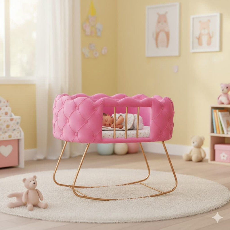 گهواره نوزاد پیشواز صنعت با طراحی خاص و منحصربهفرد خود، ترکیبی از زیبایی، استحکام و راحتی را برای نوزاد شما به ارمغان میآورد. این گهواره با روکش مخملی نرم و دوخت لمسهکاری شیک، جلوهای مدرن و لوکس به اتاق کودک میبخشد. پایههای فلزی آبکاری شده علاوه بر استحکام بالا، قابلیت تابخوردن ملایم را فراهم میکنند تا نوزاد با آرامش بیشتری به خواب رود.