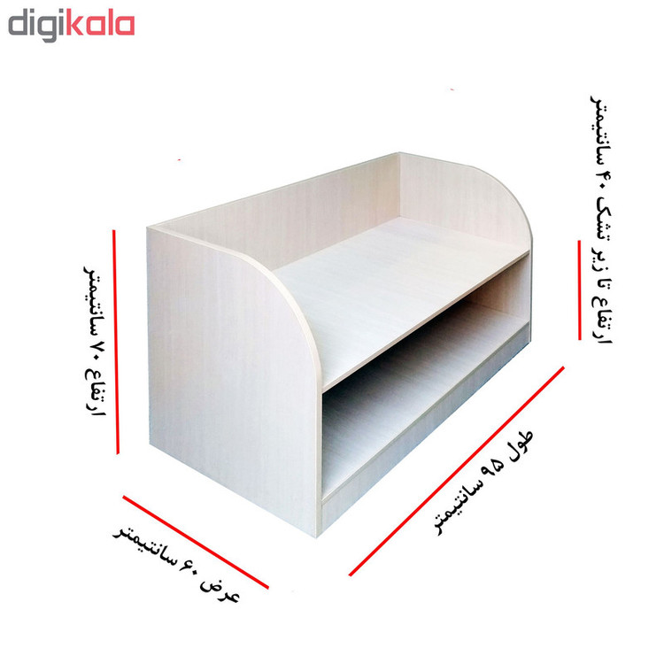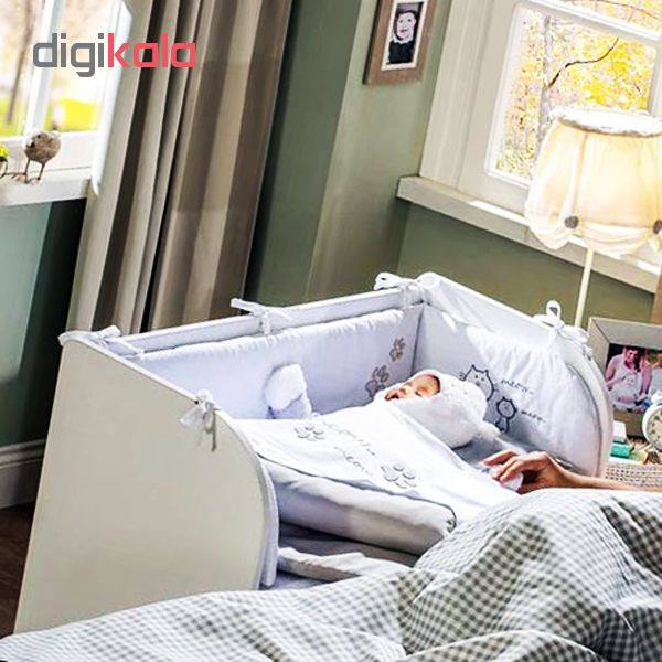 تختخواب نوزاد که در کنار تختخواب مادر قرار میگیرد دارای یک طبقه در زیر برای جای وسایل مورد نیاز ارتفاع نشیمن تشک 40 سانتیمتر است لبه های کار تمام نوار پی وی سی جنس ضد خش و ضد حساسیت