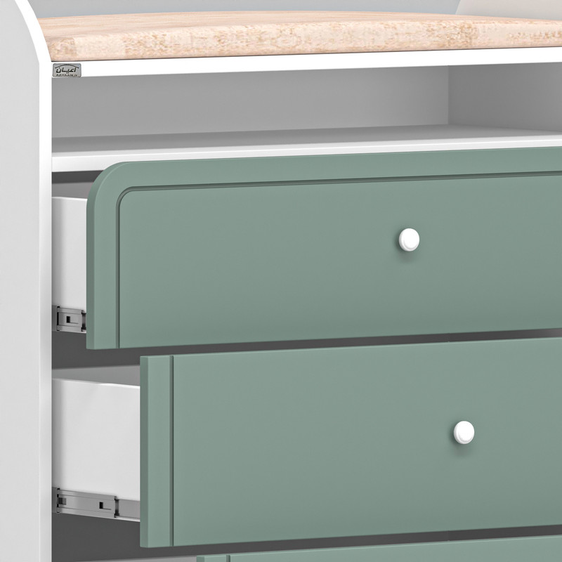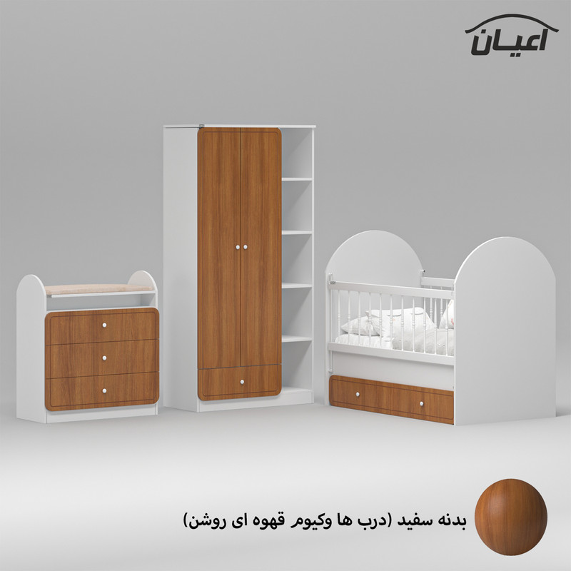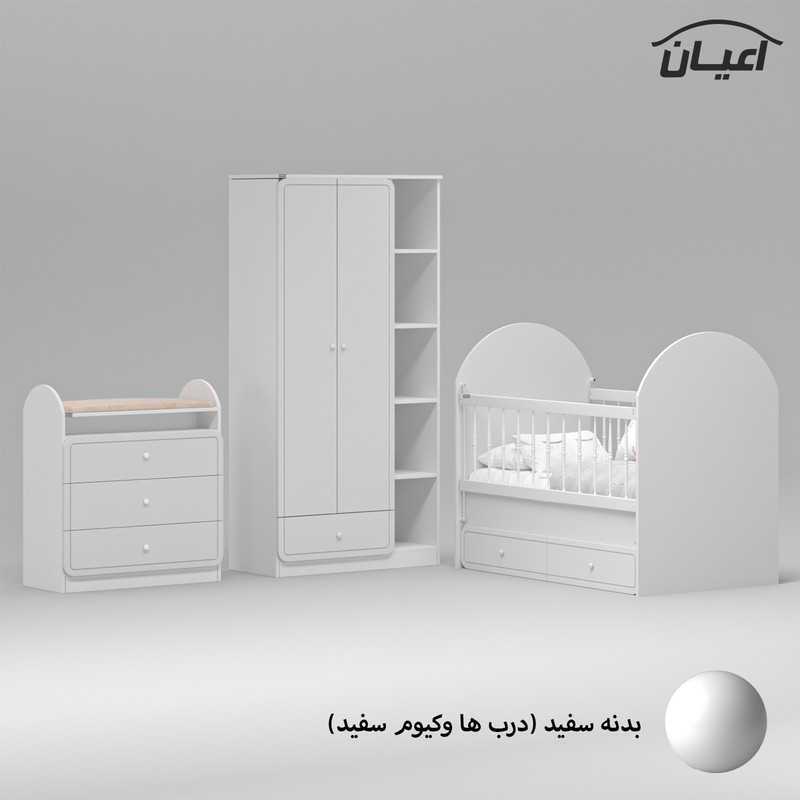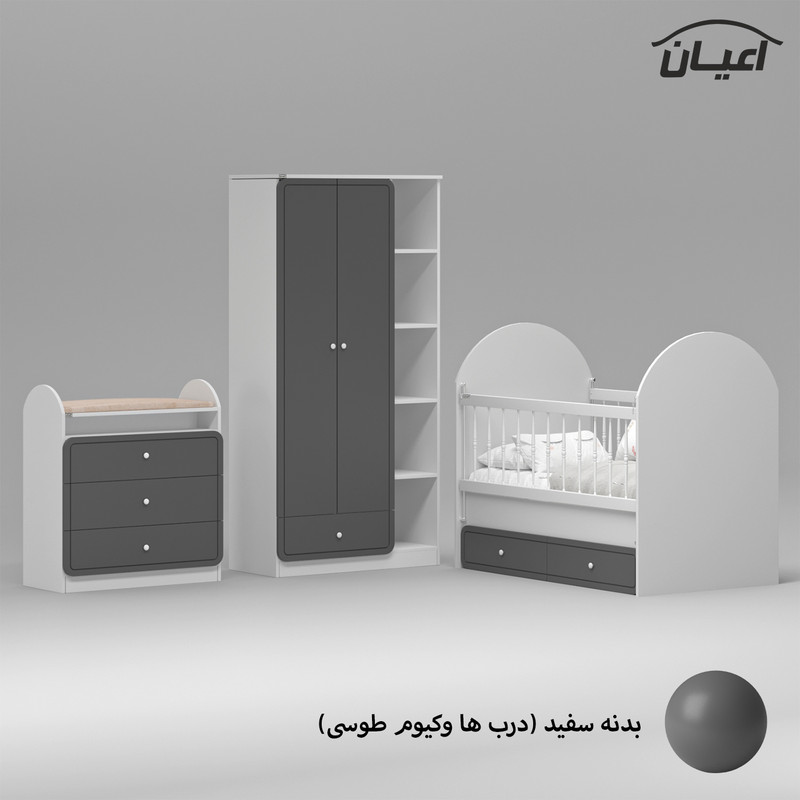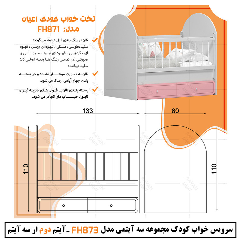 ابعاد درج شده در مشخصات فقط برای تختخواب کودک است و برای دیدن ابعاد دراور و کمد لطفا به عکس های آلبوم کار مراجعه بفرمایید
