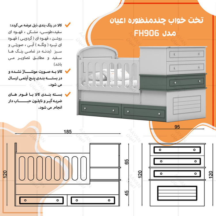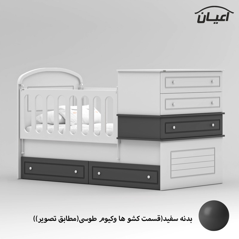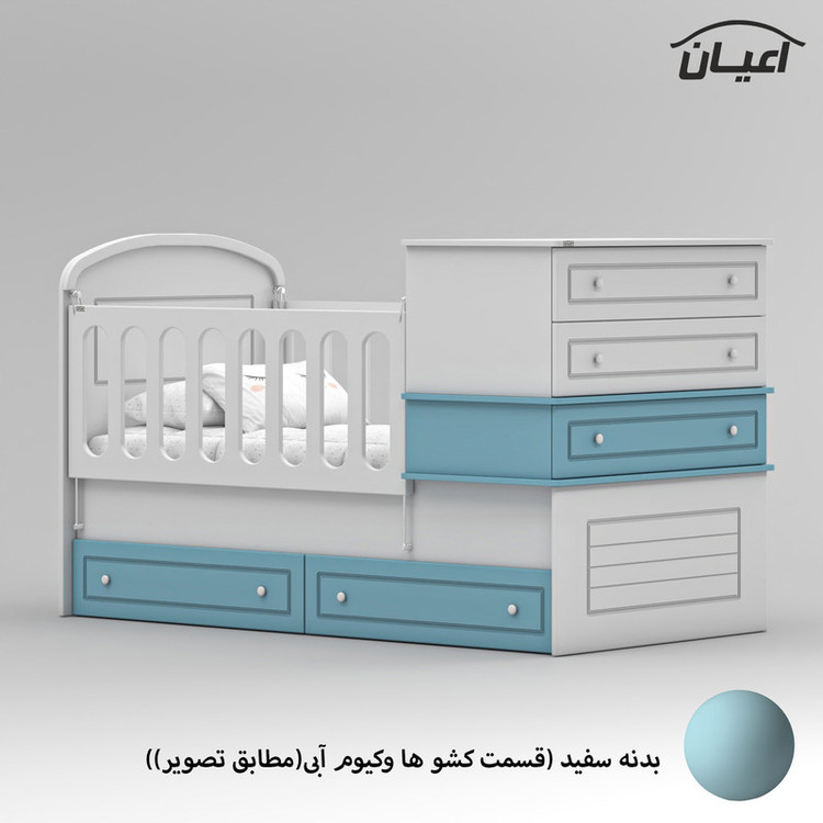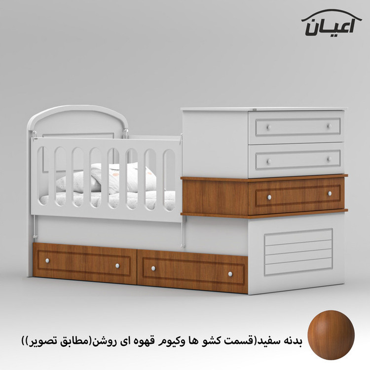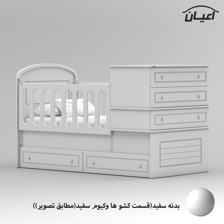 این محصول می تواند تبدیل به تختخواب نوجوان سایز 80×180 سانت و یک دراور مجزا گردد تنها کافیست حفاظ ها باز شود و دراور را بردارید.