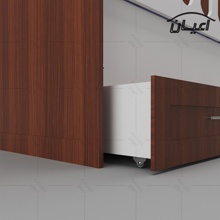 جنس ملامینه و وکیوم وزن متناسب با ابعاد. نوار پی وی سی. بسته بندی با لوگو و برند اعیان. کشو چرخدار .