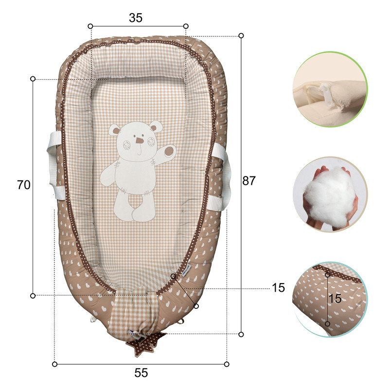 ابعاد تشک ۸۷x۵۵x۱۵ ابعاد لحاف ۱۰۰x۸۰x۳ ابعاد بالش ۳۸x۲۸x۶