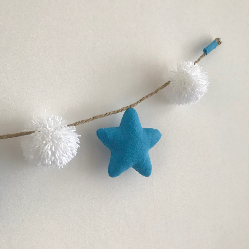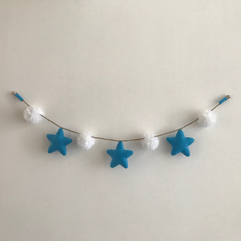 ریسه تزیینی تخت کودک از نمد درجه یک تهیه شده است. توپک ها از جنس کاموا میباشد. این ریسه برای تزیین دیوار روبه رویی تخت و سایر دیوارهای جانبی کاربرد دارد.