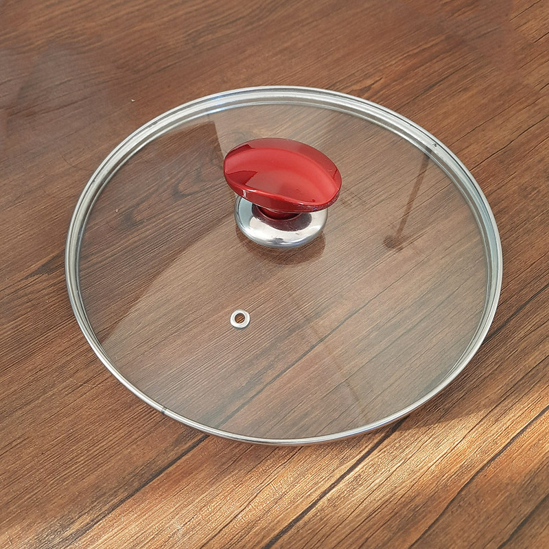 درب در سایز 16 سانتیمتر از جنس پیرکس باکیفیت بوده و دارای دستگیرهء باکالیت نسوز اصل و سنگین به رنگ سرخ(اصل) میباشد که برای انواع ماهیتابه و قابلمه در این سایز قابل استفاده میباشد. بر روی این درب، سوپاپ خروج بخار تعبیه شده است که باعث میشود در هنگام پخت و پز، بخار اضافهء درون ظروف به آسانی به بیرون انتقال یابد. شما میتوانید این درب را برای انواع قابلمه و انواع ماهیتابه با لبه صاف در سایز 16 سانتیمتر، تهیه و استفاده نمایید.