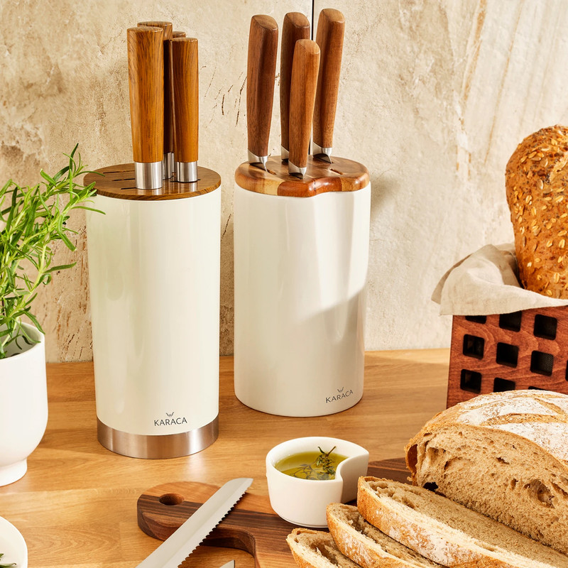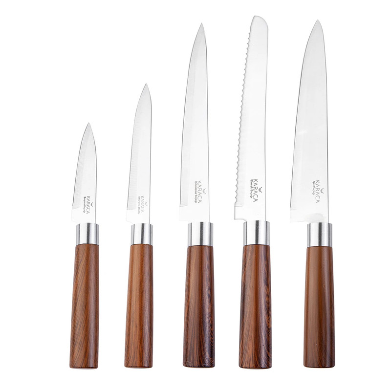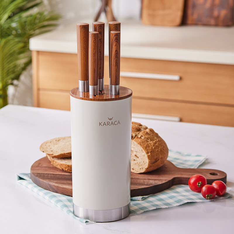 ما یک ست چاقوی بسیار شیک و بسیار کاربردی را به سرآشپزهای آشپزخانه پیشنهاد می کنیم. ست چاقو 6 تکه Karaca Foolproof دارای 6 مدل چاقو است که هر کدام زیباتر و تیزتر از دیگری هستند که شامل چاقوهای پوست کن، خرد کن، برش، نان و سرآشپز می شود. این ست چاقوی فولادی ضد زنگ که با سهولت و کاربردی بودن خود متمایز است با دسته ارگونومیک و استفاده راحت یکی از محبوب ترین محصولات آشپزخانه شما خواهد بود. چاقوهای شما با یک پایه مخصوص ساخته شده از مواد لاستیکی به منظور افزایش طول عمر و اطمینان از نگهداری آن است. شستشوی دستی محصولات توصیه می شود.