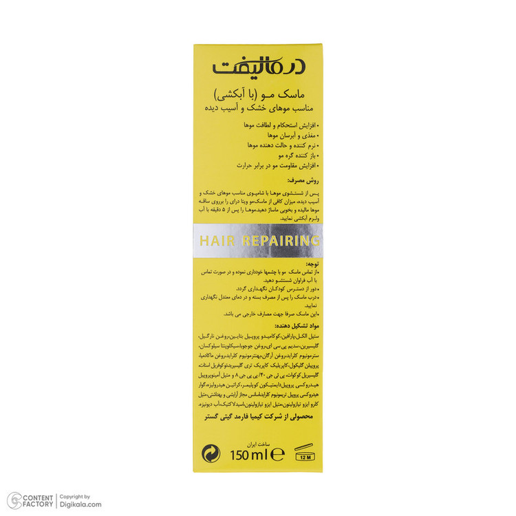 نوع ماسک و مراقبت مو: ترمیم کننده , نرم کننده , تقویت کننده