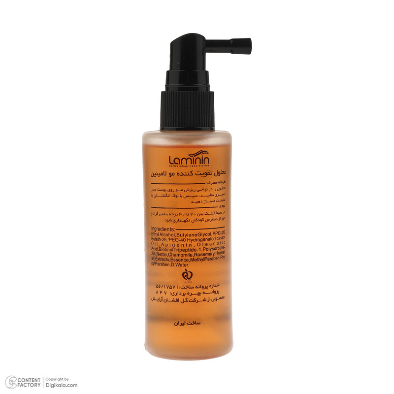 محلول را در نواحی ریزش مو اسپری کنید و سپس با نوک انگشتان ماساژ دهید.