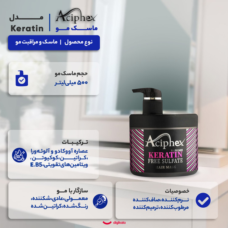نوع ماسک و مراقبت مو: تقویت کننده , نرم کننده , صاف کننده , تثبیت کننده رنگ مو , مرطوب کننده , ترمیم کننده