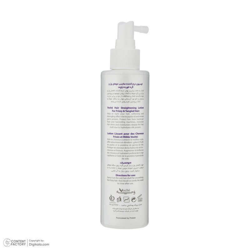 قبل از براشینگ، بر روی موهای مرطوب اسپری کرده و با سشوار خشک کنید. برای کاهش وز مو، بر روی ساقه موها اسپری کنید و سپس موها را اتو یا شانه کنید. برای باز کردن گره، بر روی گره موها اسپری کنید و بعد از چند دقیقه موها را به آرامی شانه کنید.