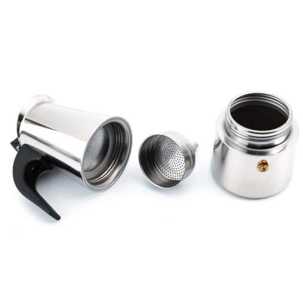 نوشیدنی قهوه در سراسر دنیا طرفداران بسیار زیادی دارد و در ایران نیز، طرفداران قهوه روز به روز افزایش می یابد. راحت ترین راه درست کردن قهوه در سفر یا خانه، استفاده از قهوه ساز یا قهوه جوش های دستی است. قهوه ساز مدل 2 کاپ، یکی از مدل های پر طرفدار است که دارای ظرفیت 100 میلی لیتر می باشد و در هر بار می توانید بین 1 یا 2 کاپ بنابر میزان مورد نظر، قهوه تهیه نمایید. این نوع اسپرسو ساز از جنس استیل ضد زنگ است و دارای ابعاد 8x8x16 سانتی متر می باشد. برای درست کردن قهوه کافی است مخزن را به میزان مورد نظر آب نمایید و قهوه را نیز در قسمت میانی به صورت یکسان فشرده نمایید، حالا درب آن را بسته و روی اجاق قرار دهید، در کمتر از 5 دقیقه یک اسپرسوی خوشمزه خواهید داشت.