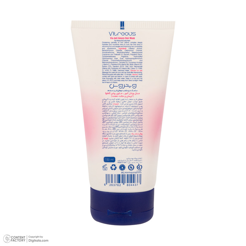 ماسک مو ویتروس مدل ویادل مناسب برای موهای مجعد و فر حجم 150 میلی لیتر