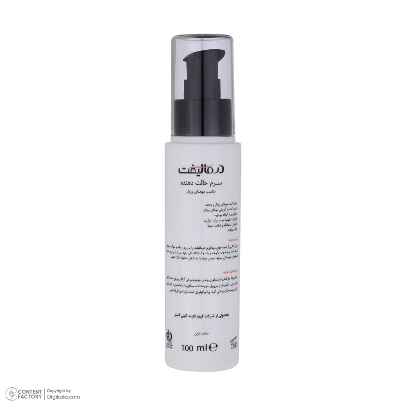 راهنمای استفاده: میزان کافی از سرم موی ویتافریز درمالیفت را بر روی ساقه و نوک موهای شسته شده و مرطوب مالیده و با نوک انگشتان خود سرم را بر روی تمام قسمت های مو پخش نمایید. سپس موها را به شکل دلخواه حالت دهید.