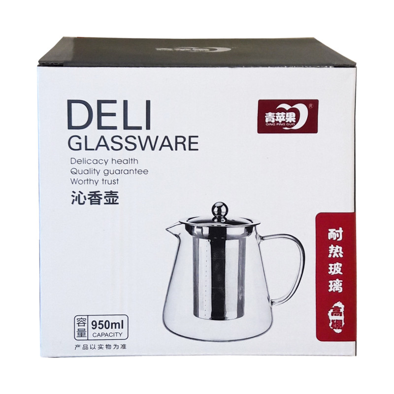 برند DELI از تولید کنندگان صاحب نام و مبتکر در عرصه بلور و چینی در کشور چین بوده و از سال 1996 در شهر نایانگ چین شروع به فعالیت نموده است. محصولات این برند در تنوع وسیعی تولید شده و در کشورهای مختلف جهان عرضه می شوند. قوری و دمنوش ساز مدل GPH کد 74 ساخته شده از بلور بروسیلیکات بسیار ظریف و مقاوم در حرارت می باشد. این قوری از بدنه ای بلوری به قطر دهانه 7.5 و ارتفاع 14 سانتی متر ساخته شده که بسیار شفاف و با کیفیت بوده و در مقابل حرارت از مقاومت بسیار بالایی برخوردار می باشد. درون این بدنه بلوری فیلتری متحرک به قطر 5.5 سانتی متر و از جنس استیل ضد زنگ بسیار با کیفیت قرار می گیرد که ارتفاعی معادل 11.5 سانتی متر داشته و با توجه به حجمی که دارد قابلیت دم کردن انواع چای و دم نوش های گیاهی را فراهم می آورد. این دمنوش ساز حجمی معادل 950 میلی لیتر داشته و مناسب آماده سازی نوشیدنی برای 6 الی 8 نفر میباشد. این مخزن استیل قابل شستشو در ماشین ظرفشویی نبوده و می بایست فقط به صورت دستی شسته شود. فیلتر و درب این قوری از جنس استیل ضد زنگ و مقاوم و قابل شستشو تولید شده است که به راحتی قابل جدا شدن از قوری می باشد. از این قوری می توان برای دم کردن انواع چای و دم نوش های گیاهی برای پذیرایی از 6 الی 8 نفر استفاده کرد.